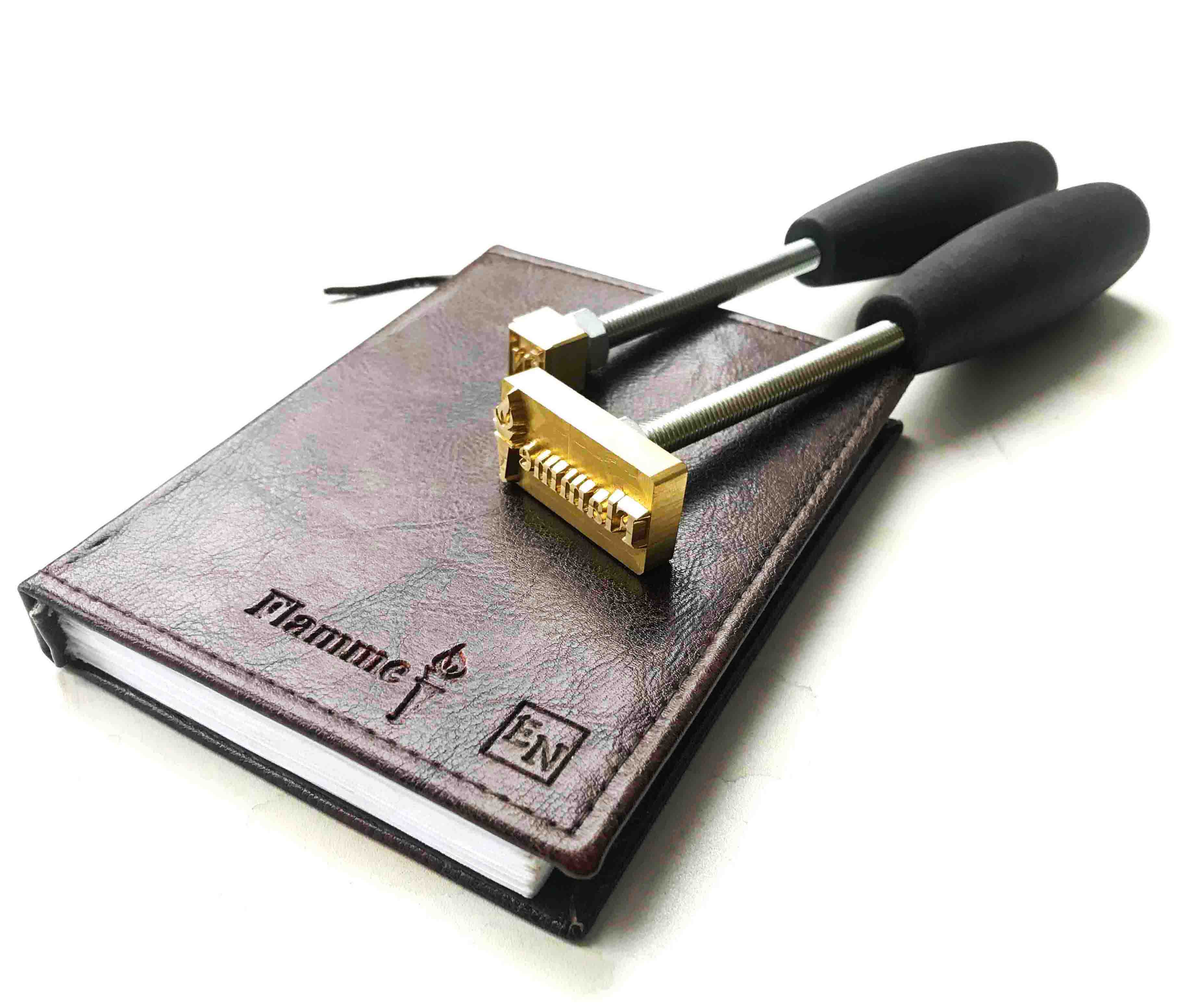 Данное клеймо предназначено для нанесения оттиска на коже, пластике, резине и прочих материалах мягкой основы. На изделии гравируется логоитип или символы заказчика. Для изделий мастеров, занимающихся работой с кожей, отлично подойдет личный оттиск, который сделает их изделия более индивидуальными. Для нанесения оттиска клеймом по коже требуется произвести нагрев. Нагретое клише прислоняется к изделию, что создает тиснение. Если данную операцию произвести через специальную фольгу, то оттиск тиснение получится более выразительным и ярким.